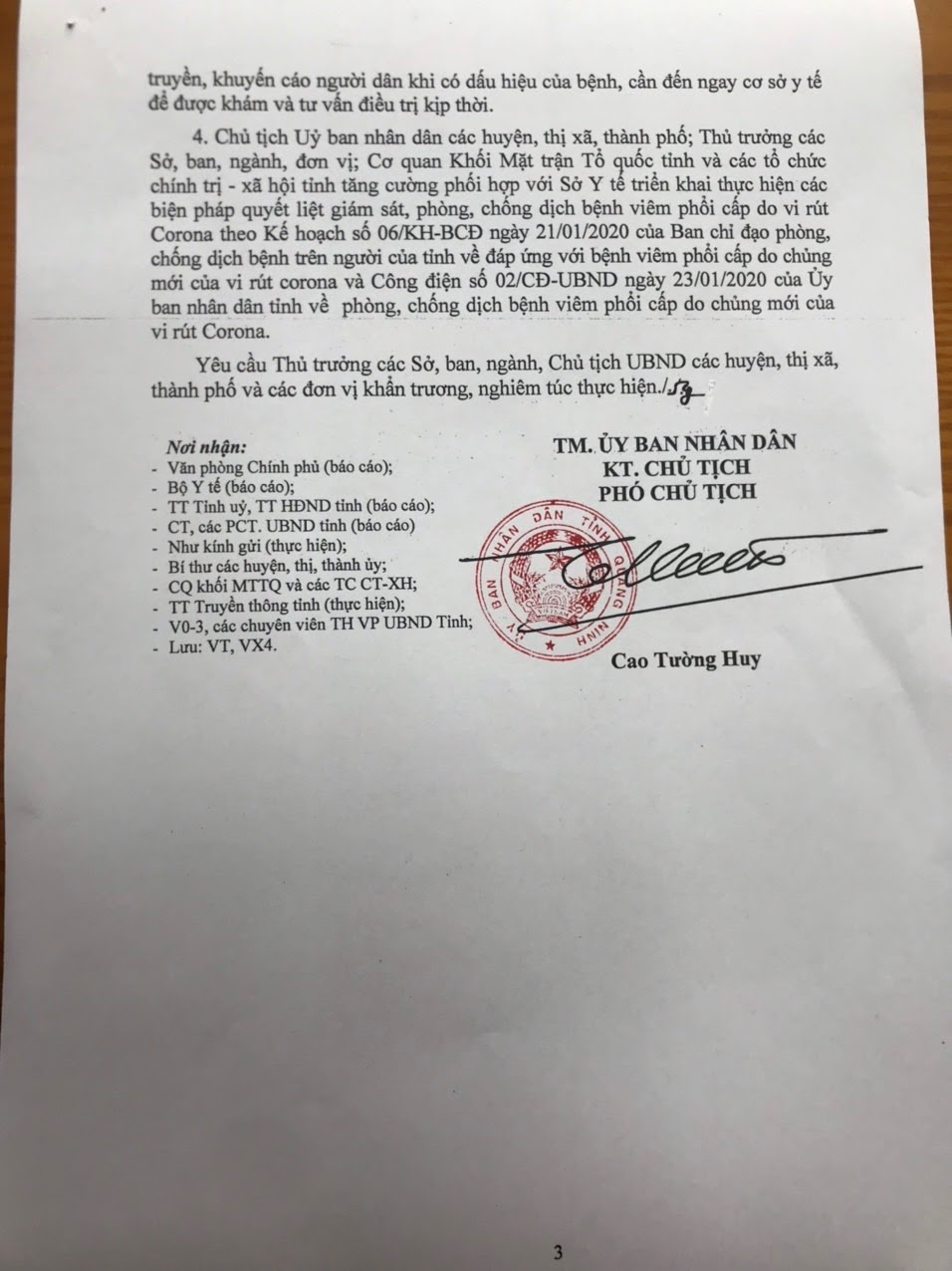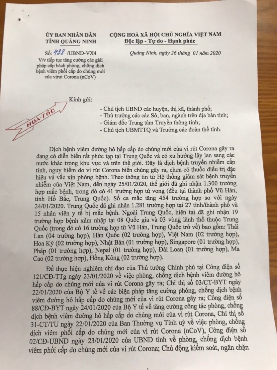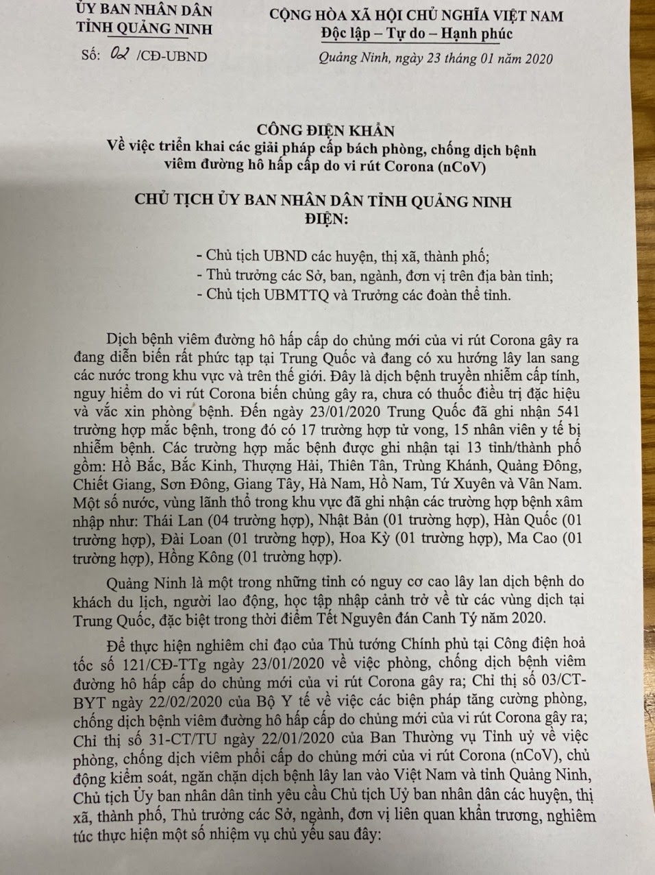 Thứ 5, 23/01/2020 | 21:08 A- A A+ | UBND QUẢNG NINH - CÔNG ĐIỆN KHẨN V/V TRIỂN KHAI CÁC GIẢI PHÁP CẤP BÁCH PHÒNG, CHỐNG BỆNH VIÊM ĐƯỜNG HÔ HẤP CẤP DO VI RÚT CORONA (NCOV) Đọc bài Lưu Nguồn:trungtamytemongcai.vn Copy link Nguồn: http://trungtamytemongcai.vn/index.php?option=com_content&view=article&id=1171:ubnd-qung-ninh-cong-in-khn-vv-trin-khai-cac-gii-phap-cp-bach-phong-chng-bnh-viem-ng-ho-hp-cp-do-vi-rut-corona-ncov&catid=128:viem-phi-cp-coronavirus Tổng số điểm của bài viết là: 0 trong 0 đánh giá Click để đánh giá bài viết