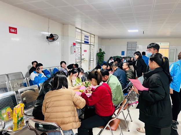 Việc tiếp nhận máu của các tình nguyện viên thực hiện trong cả ngày 15/1, trong cả thời gian buổi trưa tại Tầng 2 – Khoa Xét nghiệm, Bệnh viện Đa khoa khu vực Móng Cái