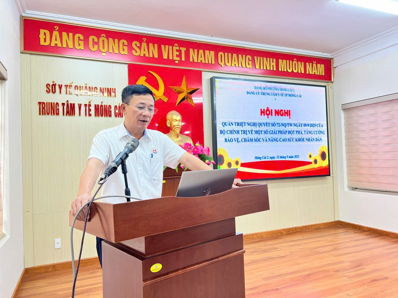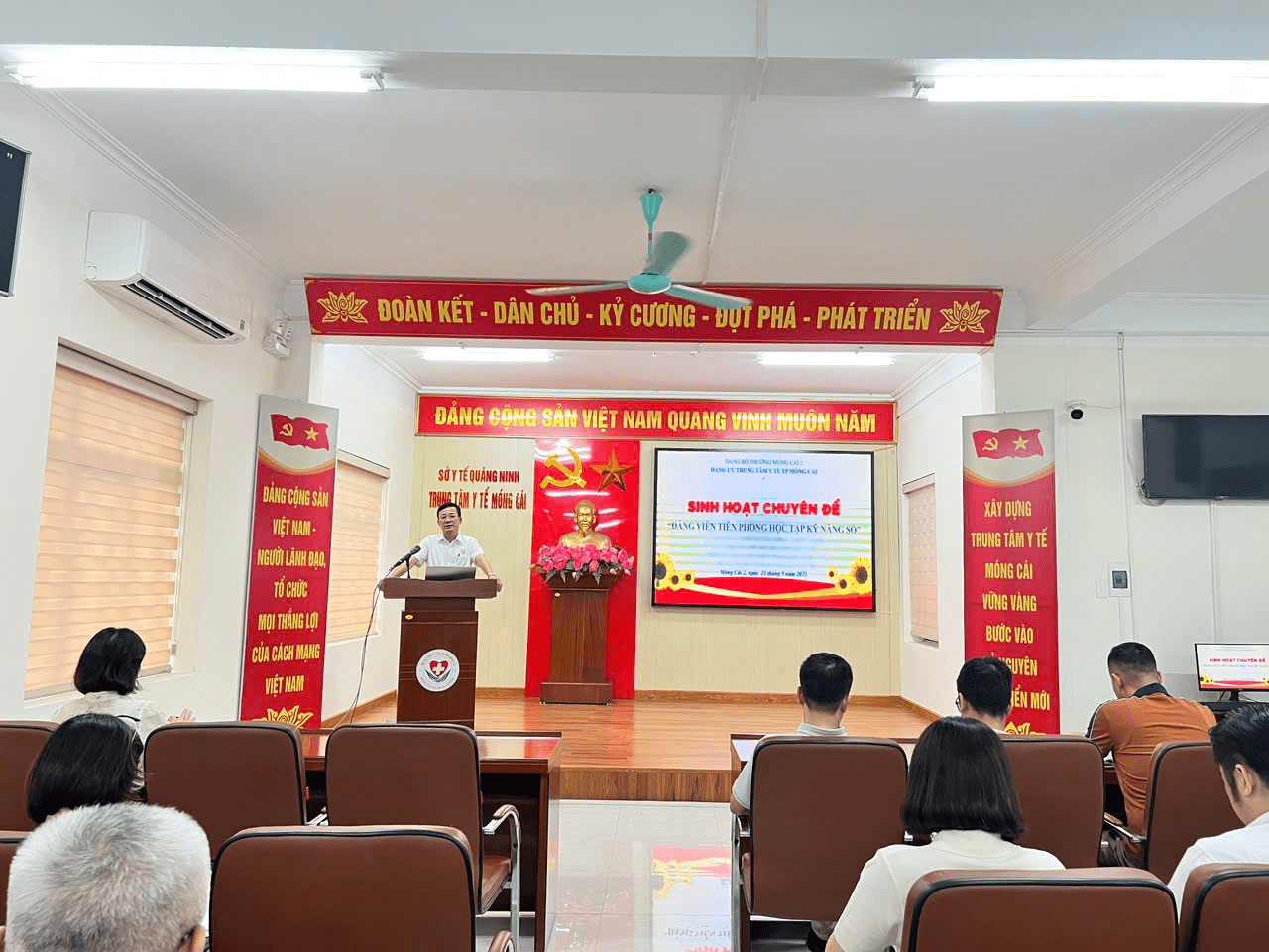 Chiều ngày 25/9/2025, tại Hội trường, Đảng ủy Trung tâm Y tế Móng Cái đã tổ chức Hội nghị sinh hoạt chuyên đề và quán triệt, triển khai các nghị quyết, kết luận quan trọng của Trung ương và Đảng ủy phường Móng Cái 2. Tham dự Hội nghị có các đồng chí trong Ban Chấp hành Đảng bộ, Thường trực Đảng ủy, Ban Giám đốc, Ban Chấp hành Công đoàn, Chi đoàn thanh niên, chi ủy các chi bộ trực thuộc, trưởng, phó các khoa phòng cùng toàn thể đảng viên trong Đảng bộ.