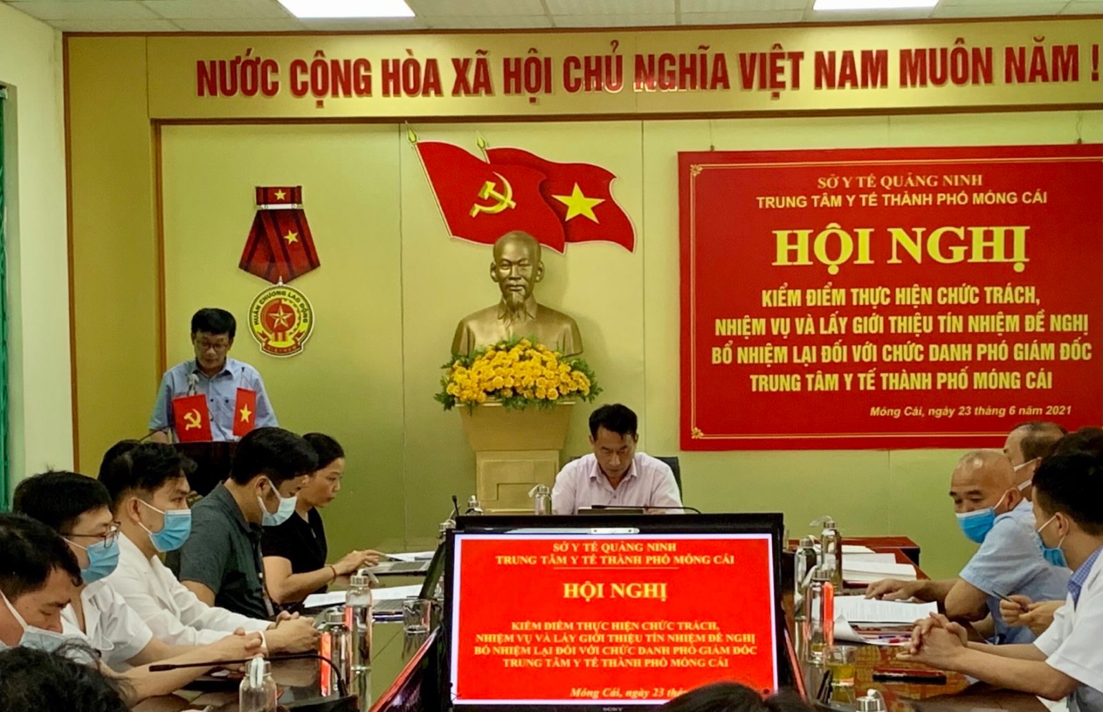 Ngày 23/6/2021, Trung tâm Y tế thành phố Móng Cái tổ chức Hội nghị kiểm điểm thực hiện chức trách nhiệm vụ và lấy giới thiệu tín nhiệm đề nghị bổ nhiệm lại đối với chức danh Phó Giám đốc Trung tâm Y tế thành phố Móng Cái. Đồng chí Nguyễn Mạnh Tuấn, Phó giám đốc Sở Y tế dự và chỉ đạo; đồng chí Đoàn Ngọc Thủy, Bí thư Đảng ủy, Giám đốc Trung tâm Y tế thành phố Móng Cái chủ trì Hội nghị.