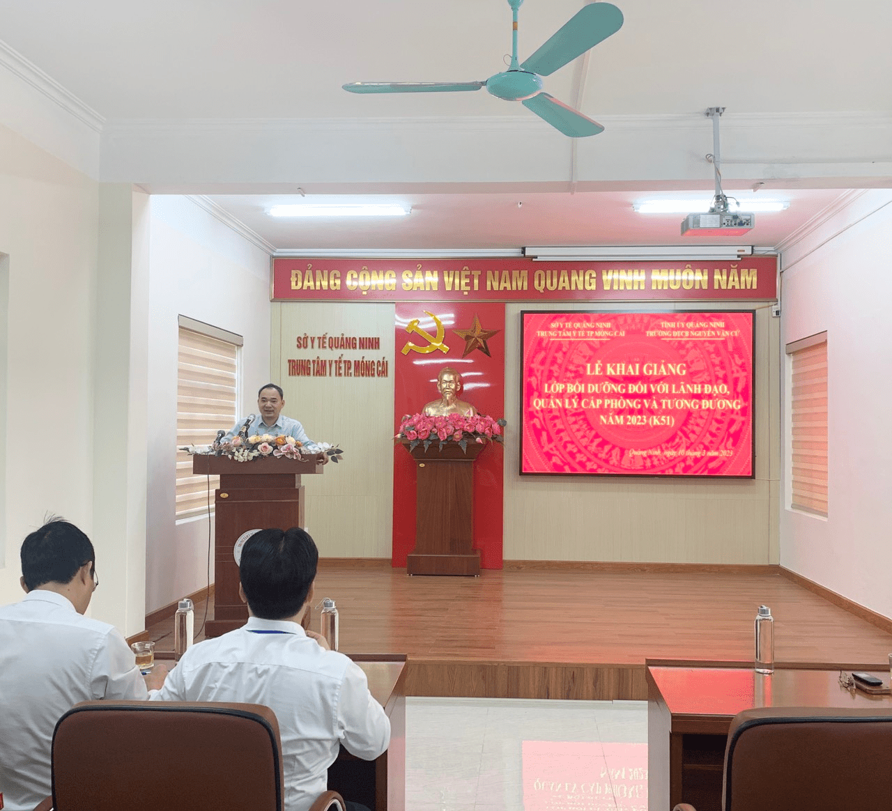 Quang cảnh Lễ khai giảng lớp quản lý lãnh đạo cấp phòng và tương đương năm 2023 (K51) tại Trung tâm y tế thành phố Móng Cái