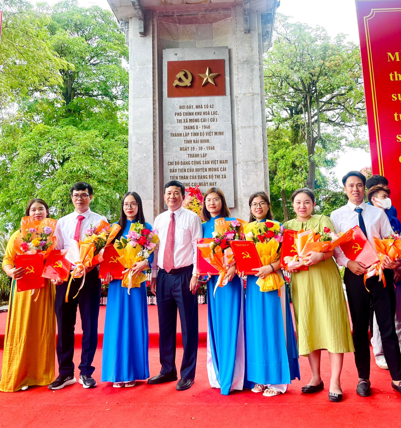 Sáng 19/10, tại Di tích Biểu tượng nơi thành lập Chi bộ Đảng Cộng sản Việt Nam đầu tiên của huyện Móng Cái, BCH Đảng bộ TP Móng Cái long trọng tổ chức Lễ công bố quyết định kết nạp đảng viên mới chào mừng kỷ niệm 60 năm Ngày thành lập tỉnh Quảng Ninh (30/10/1963 - 30/10/2023) và 15 năm ngày thành lập TP Móng Cái (24/9/2008 - 24/9/2023). Đảng bộ trung tâm y tế thành phố Móng Cái có 07 đ/c vinh dự được Đảng bộ thành phố trao quyết định kết nạp đảng viên mới trong dịp này.