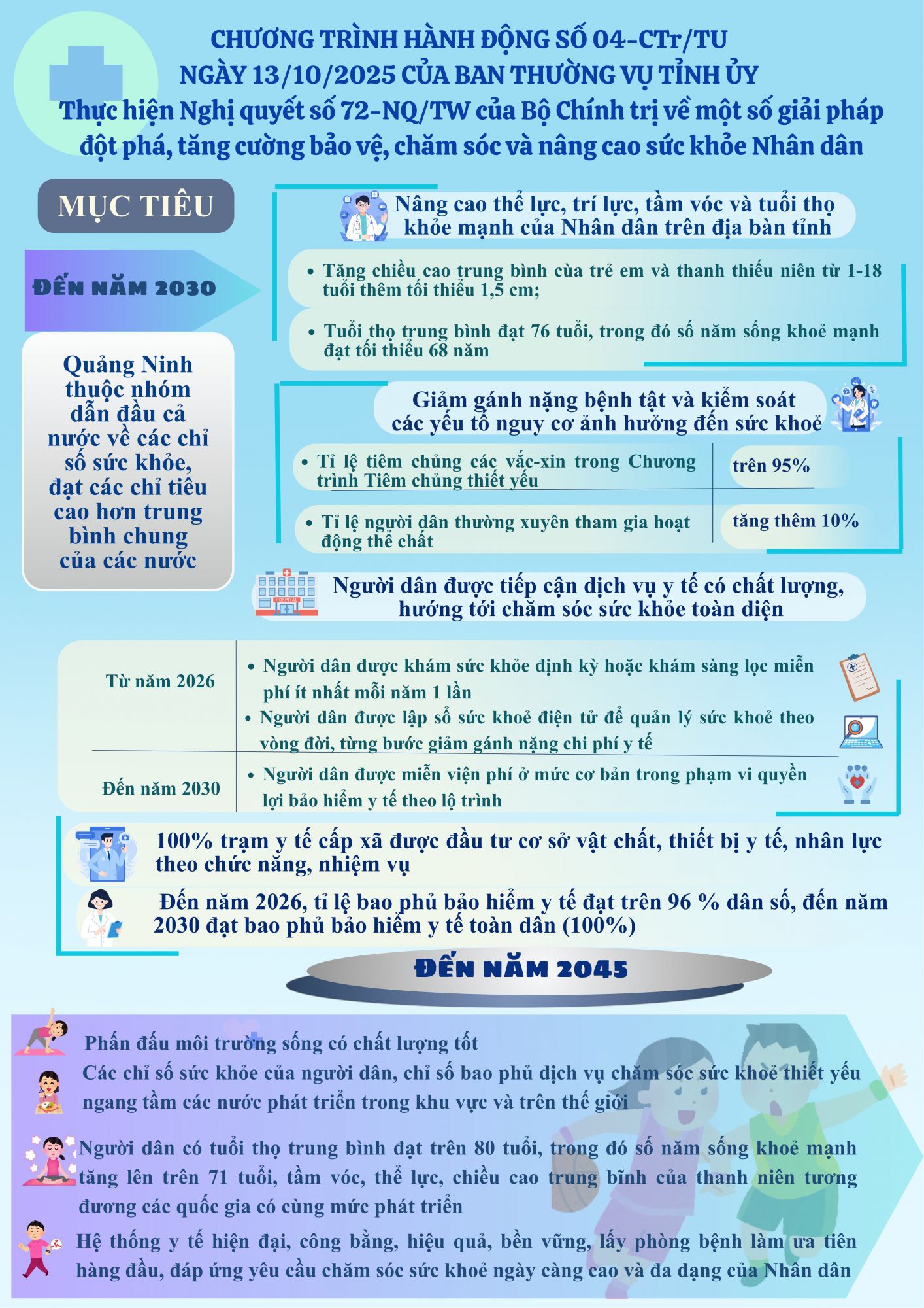 INFOGRAPHIC: Chương trình hành động số 04-CTr/TU thực hiện Nghị quyết số 72-NQ/TW của Bộ Chính trị về một số giải pháp đột phá, tăng cường bảo vệ, chăm sóc và nâng cao sức khỏe Nhân dân